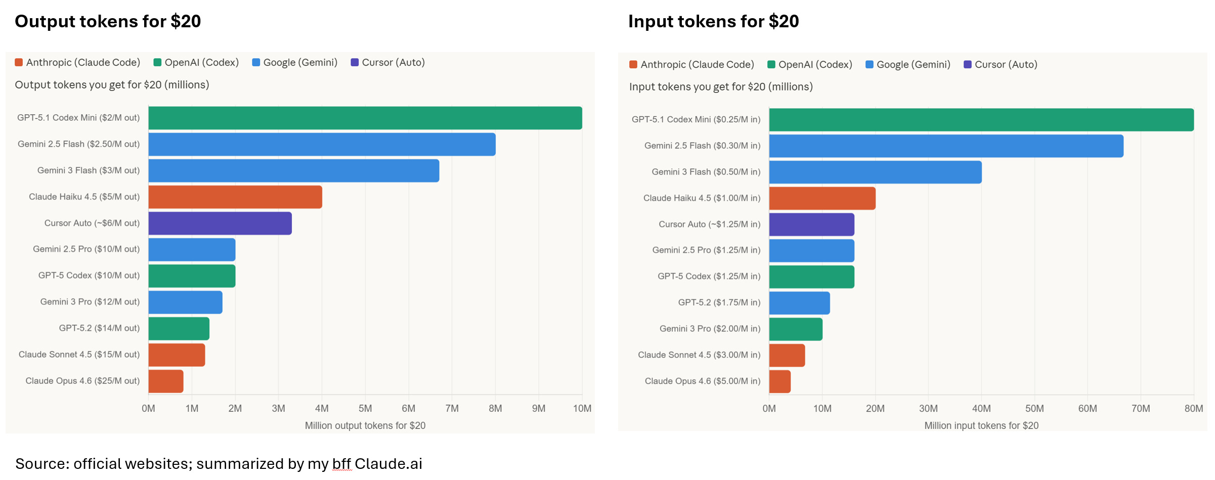 So let’s use API pricing ($ per input token, $ per output token) as a proxy: